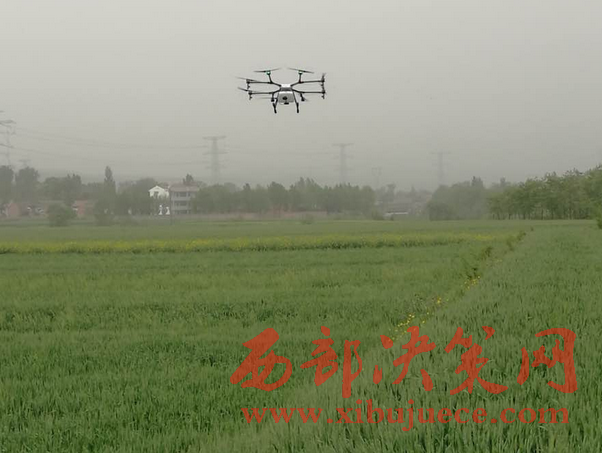 西部決策網(wǎng)-西部大開發(fā)(帥華鋒 李海瑞 通訊員 張蕾)5月5日上午9點(diǎn),微風(fēng)拂面、麥浪輕翻,6臺植保無人機(jī)正在隴縣東風(fēng)鎮(zhèn)普樂塬村的麥田上空作業(yè),飛行在距離小麥80公分處均勻地噴灑農(nóng)藥。