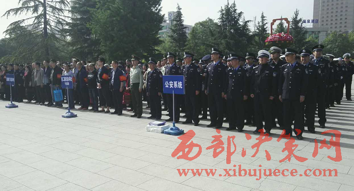 西部決策網(wǎng)-西部大開發(fā)訊(帥華鋒 杜杰)5月6日上午,渭濱區(qū)在炎帝園廣場隆重舉行打造“經(jīng)二路平安示范一條街” 夏季攻堅行動推進會,市委政法委及區(qū)委、區(qū)人大、區(qū)政府、區(qū)政協(xié)相關(guān)領(lǐng)導(dǎo)出席現(xiàn)場,公安、執(zhí)法、區(qū)級部門、平安單位、社區(qū)志愿者組成五個方陣共300余人參加會議。