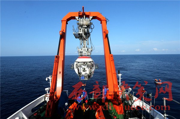 5月10日,“蛟龍”號載人潛水器布放入水,進行今年南海最后一潛。