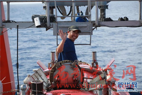 5月23日,新華社記者劉詩(shī)平走出“蛟龍”號(hào)載人艙。