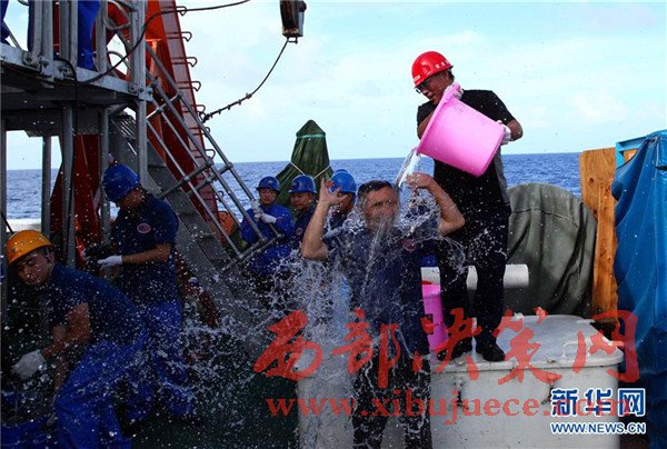 5月23日,首次下潛人員深潛歸來(lái)接受“洗禮”。
