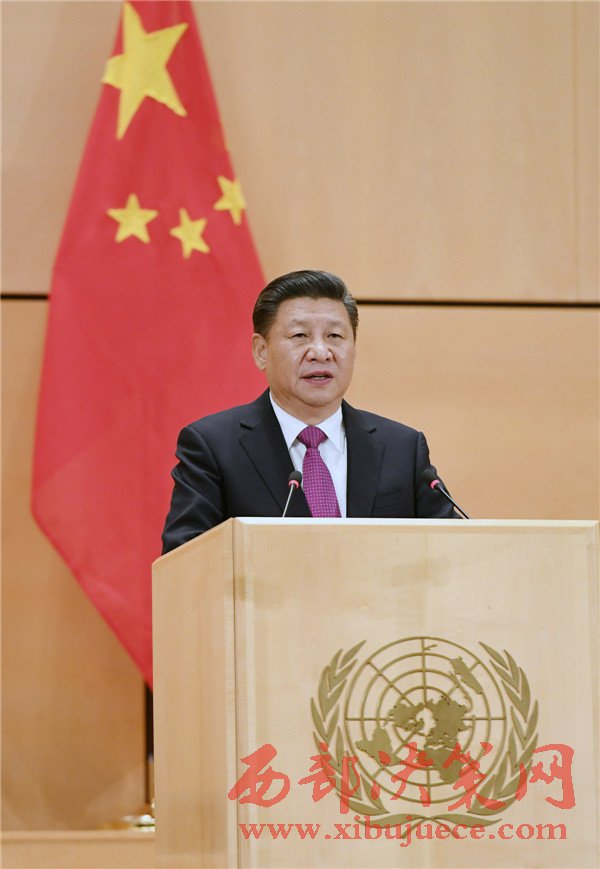 2017年1月18日,國家主席習(xí)近平在瑞士日內(nèi)瓦萬國宮出席“共商共筑人類命運(yùn)共同體”高級(jí)別會(huì)議,并發(fā)表題為《共同構(gòu)建人類命運(yùn)共同體》的主旨演講。(記者 饒愛民 攝)