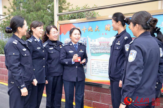 山東省女子強制隔離戒毒所醫(yī)療康復科科長李芙蓉向同事宣講十九大精神。劉桂珍 攝