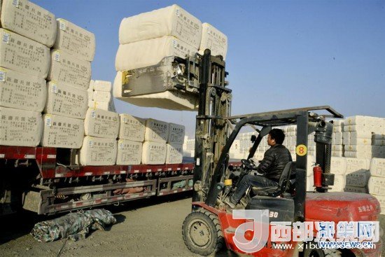 11月30日,工作人員將皮棉裝車準備外運。新華社發(fā)(杜炳勛 攝)