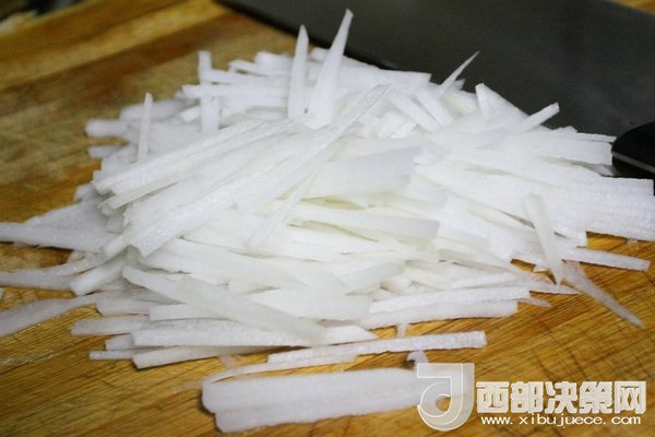 10、加入白蘿卜絲繼續(xù)中小火慢慢燉至湯汁變得更加濃稠和奶白狀態(tài)時(shí)出鍋,出鍋前5分鐘左右加入適量鹽調(diào)味,出鍋后撒上蔥花。