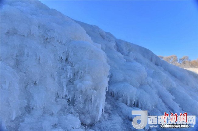 連日來,受冷空氣影響,位于甘肅肅南裕固族自治縣城的隆暢河形成美麗的冰瀑、冰掛等景觀,在陽光映照下晶瑩剔透、璀璨生輝。