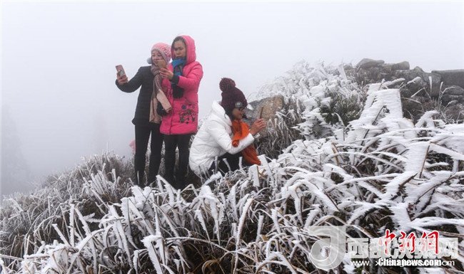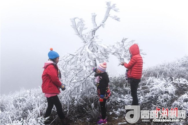 12月17日,福建省長(zhǎng)汀縣天井山迎來(lái)首場(chǎng)霧凇,吸引不少游客前來(lái)觀賞。根據(jù)天氣預(yù)報(bào)顯示,未來(lái)的一周,長(zhǎng)汀縣最低氣溫低至零下2攝氏度,部分高海拔地區(qū)將出現(xiàn)凍雨現(xiàn)象。(張平 攝)
