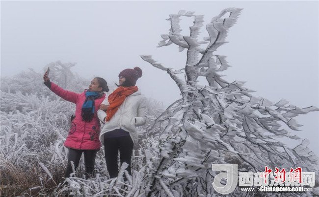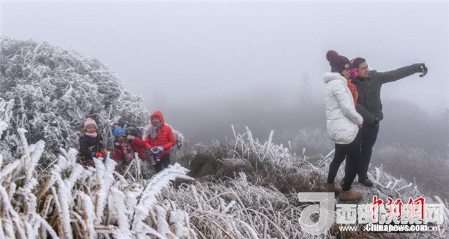 12月17日,福建省長(zhǎng)汀縣天井山迎來(lái)首場(chǎng)霧凇,吸引不少游客前來(lái)觀賞。根據(jù)天氣預(yù)報(bào)顯示,未來(lái)的一周,長(zhǎng)汀縣最低氣溫低至零下2攝氏度,部分高海拔地區(qū)將出現(xiàn)凍雨現(xiàn)象。 (張平 攝)