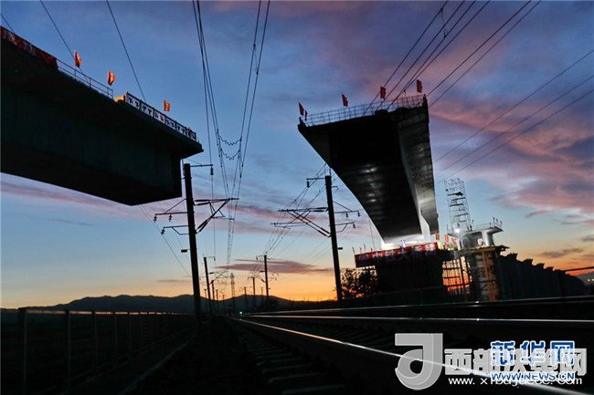 河北省懷來縣境內的新建京張高鐵跨大秦鐵路線土木特大橋連續(xù)梁在轉體中(9月17日攝)。