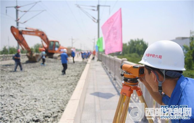 石濟客專引入石家莊樞紐工程的建設人員在進行測量作業(yè)(6月15日攝)。這一工程預計今年12月底全線通車,建成后石家莊至濟南乘坐高鐵只需90分鐘左右。
