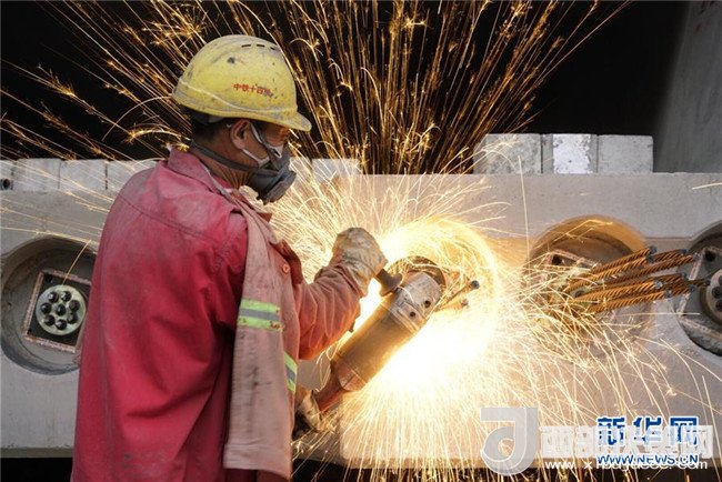 工人在中鐵上海工程局銀西高鐵甘寧段制梁場制作高鐵預制梁(4月17日攝)。銀西高鐵跨陜西、甘肅、寧夏三?。▍^(qū)),速度目標為250公里每小時,計劃2020年建成通車,屆時從西安到銀川將由現(xiàn)在的14個小時縮短至3小時左右。