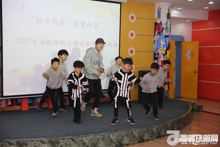 論壇上,西安市浐灞第二幼兒園的謝曉鳴和孩子們帶來的街舞表演點燃了全場,讓大家感受到幼兒園男教師的熱情和激情;陜西師范大學(xué)幼兒園的韓凱帶來的鋼琴演奏《一壺美酒》傳達(dá)了深切的情感,讓人回味無窮;西航天鼎保育院的趙棟用挺拔健美的身姿表演的拉丁串燒,展現(xiàn)了生命自信的力量;電信十所幼兒園的孫博一只單簧管演奏,吹出了男教師細(xì)致柔情的一面;西安市雁塔區(qū)第一幼兒園的陳曉峰演唱的《祖國,慈祥的母親》讓我們領(lǐng)略了幼兒園男教師專業(yè)的唱功和對職業(yè)的自信;西北工業(yè)大學(xué)幼兒園教師董樂帶領(lǐng)小朋友展示了動感的啦啦操和籃球活動,場上的小運動員自信的運球、上籃、投球,矯健的身姿,專注的表情,默契的配合,感染著在場的每一位教師;西安市第五保育院肖波和陜西睿星體育一群陽光帥氣的男教師組織的趣味體能游戲?qū)⒒顒託夥胀葡蛄烁叱薄?/p>