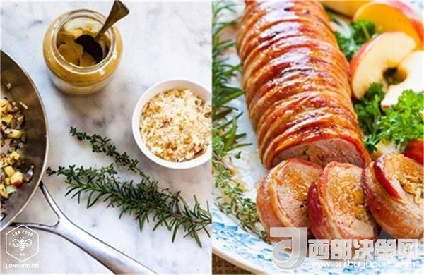 口感細(xì)膩的里脊肉中間,夾雜一些清爽的蘋果洋蔥粒、粗糧面包屑,再在外圍包裹一圈煙熏培根,這層層的誘惑想必沒(méi)有人可以抵擋得住。
