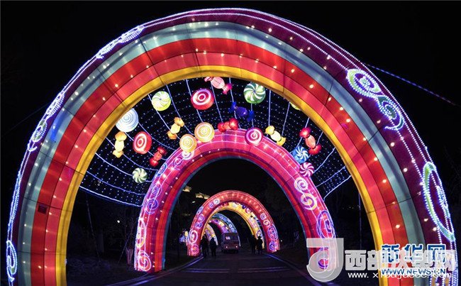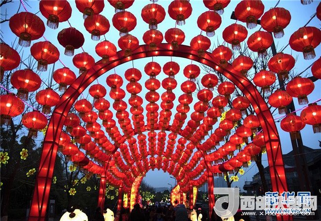1月1日,在武漢園博園第三屆花燈會上,市民在大紅燈籠組成的長廊中穿行。當日,武漢園博園第三屆花燈會開幕。本屆花燈會共設(shè)置8大版塊118組彩燈,吸引了許多市民前來觀賞。(記者 程敏 攝)