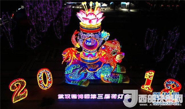 這是1月1日拍攝的武漢園博園第三屆花燈會上的一處花燈。當日,武漢園博園第三屆花燈會開幕。本屆花燈會共設(shè)置8大版塊118組彩燈,吸引了許多市民前來觀賞。 (記者 程敏 攝)
