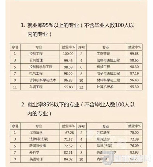 本科部分專業(yè)就業(yè)情況。