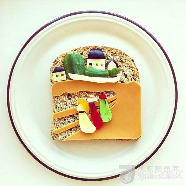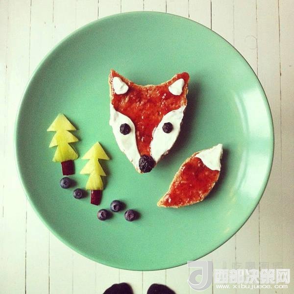 2012年,Ida Skivenes在網(wǎng)上看到一張用兩片土司擺出熊和狐貍造型的照片。受到啟發(fā)的她決定開始自己嘗試這種創(chuàng)意美食攝影。Skivenes用不同顏色的盤子作為背景,將各種食材擺放其上,組成一幅幅有趣畫面,然后用手機拍下來并分享在Instagram上。