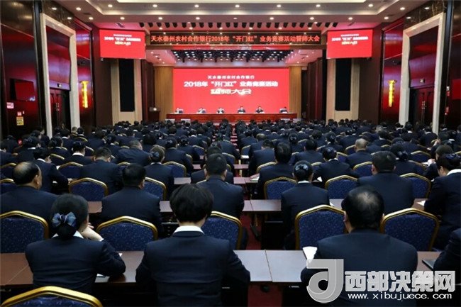 西部決策網(wǎng)-西部大開發(fā)訊(帥華鋒 通訊員 馬存福 漆曉明)1月2日上午8時,天水賓館會議中心燈火通明、濟濟一堂,醒目的橫幅,激昂的誓言,吹響了天水秦州農(nóng)村合作銀行2018年“開門紅”業(yè)務競賽活動戰(zhàn)斗的號角,擂響了全員沖鋒的戰(zhàn)鼓,拉開了決戰(zhàn)“開門紅”的大幕。