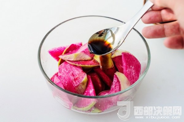 紅心蘿卜如果直接生吃過于單調(diào)了,用一點(diǎn)紅糖,少許陳醋調(diào)成汁把蘿卜浸泡了吃,口感層次豐富,營(yíng)養(yǎng)和顏值也提升了一檔。紅糖溫中補(bǔ)血還可中和陳醋的酸澀,這樣調(diào)成的酸甜汁適合冬天做涼拌菜使用。