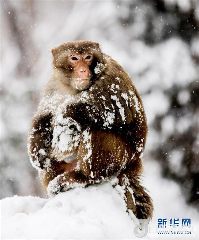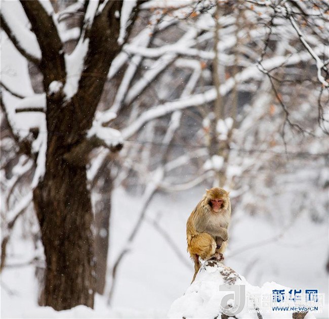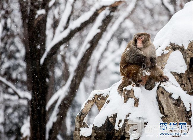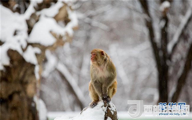 1月4日,安徽省淮北市相山公園的猴子獨(dú)立雪中。 當(dāng)日,淮北迎來一場強(qiáng)降雪。(王文 攝)