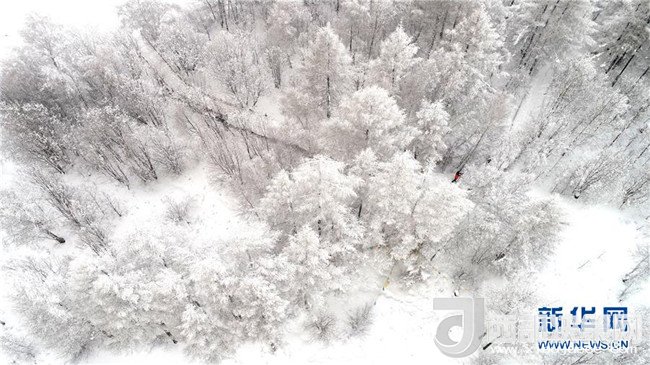 阿爾山市白狼崗霧凇景觀(1月9日攝)。