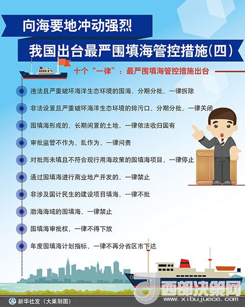 ?。保啡眨瑖?guó)家海洋局舉行圍填海情況新聞發(fā)布會(huì),國(guó)家海洋局副局長(zhǎng)林山青宣布,結(jié)合圍填海督察整改工作,國(guó)家海洋局將采取“史上最嚴(yán)圍填海管控措施”,以期保護(hù)優(yōu)先、集約利用的用海理念牢固確立,使海域開發(fā)利用得到可持續(xù)發(fā)展。