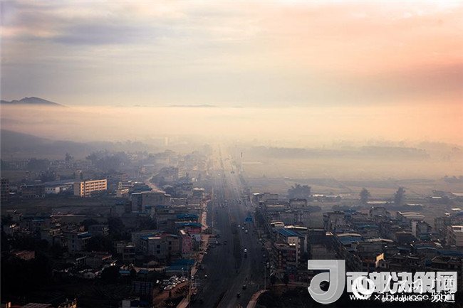 1月18日電1月18日,廣西上思縣城出現(xiàn)了平流霧奇觀,在朝陽渲染下的金黃色霧氣在低空緩緩地流動(dòng),樓房在霧氣中若隱若現(xiàn),宛若仙境。