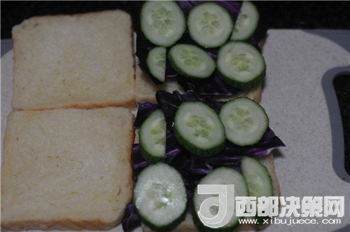 13.土司片上依次擺放上黃瓜片
