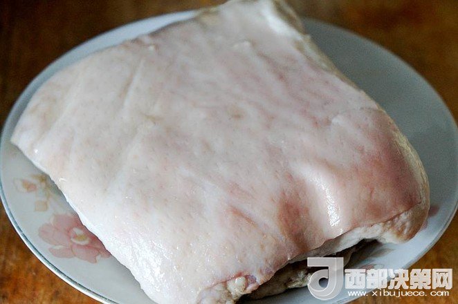 3.五花肉清洗后把肉皮刮洗干凈