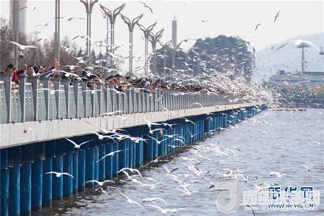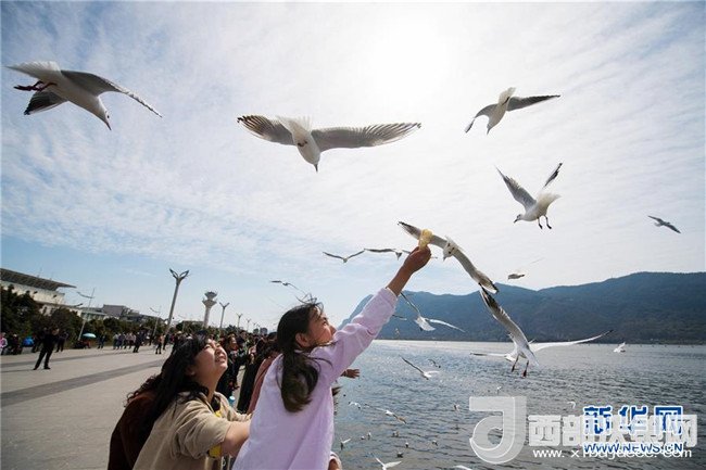 當(dāng)日,云南省昆明市陽光明媚,眾多市民和游客來滇池海埂觀景大道觀賞、投喂紅嘴鷗。每年秋冬季大批紅嘴鷗飛臨昆明越冬。人鷗同樂成為昆明的一道風(fēng)景線。記者胡超攝