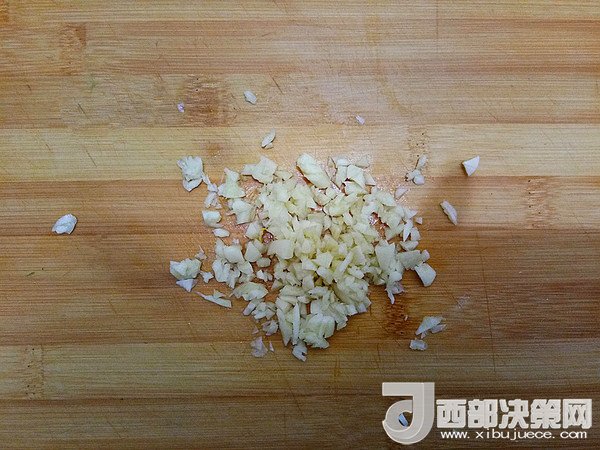 5.鍋中放油,油熱后放入蒜末爆出香味。