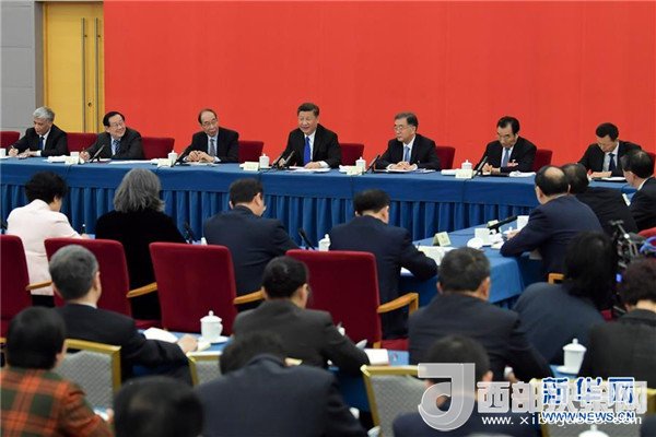 3月4日下午,中共中央總書(shū)記、國(guó)家主席、中央軍委主席習(xí)近平看望參加全國(guó)政協(xié)十三屆一次會(huì)議的民盟、致公黨、無(wú)黨派人士、僑聯(lián)界委員,并參加聯(lián)組會(huì),聽(tīng)取意見(jiàn)和建議。中共中央政治局常委、全國(guó)政協(xié)十三屆一次會(huì)議主席團(tuán)會(huì)議主持人汪洋參加看望和討論。記者 李學(xué)仁 攝