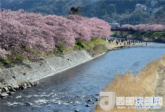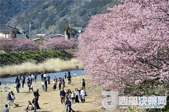 在太平洋沿岸的日本伊豆半島,河津櫻競相綻放,吸引了眾多游客。記者馬平攝