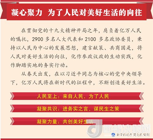在貫徹黨的十九大精神開局之年,肩負(fù)著億萬人民的囑托,2900多名人大代表和2100多名政協(xié)委員,秉持以人民為中心的發(fā)展思想,建言獻(xiàn)策、共商國(guó)是,將人民對(duì)美好生活的向往,化作參政議政的生動(dòng)實(shí)踐,化作腳踏實(shí)地的務(wù)實(shí)行動(dòng)。