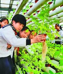 山東省濱州市博興縣第一小學的學生們在植物生態(tài)館里學知識。新華社發(fā)