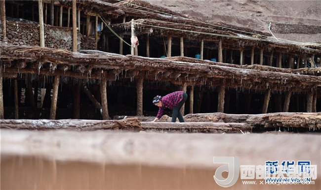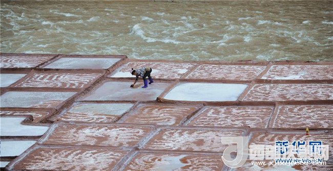 鹽農(nóng)在打理自家的鹽田(3月11日攝)。位于西藏東南部與滇北高原毗連處的昌都芒康縣鹽井古鹽田,是至今仍保持最原始手工曬鹽方式的鹽田。據(jù)史料記載,早在唐朝時期這里就開始曬鹽。目前該處有鹽田3000多塊,從事鹽業(yè)生產(chǎn)的居民有300多戶。當(dāng)?shù)厝罕娫跒憸娼祥_山鑿井,取出巖層深處含鹽的鹵水倒入鹽田,經(jīng)陽光蒸曬、風(fēng)干,結(jié)晶成鹽。新華社記者晉美多吉攝