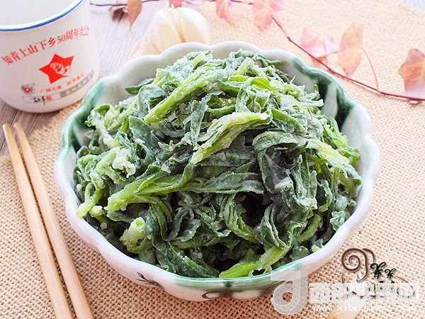 1.面條菜洗凈、控至不滴水,放入大盆中,淋入少許植物油抓勻,這樣可以防止粘連