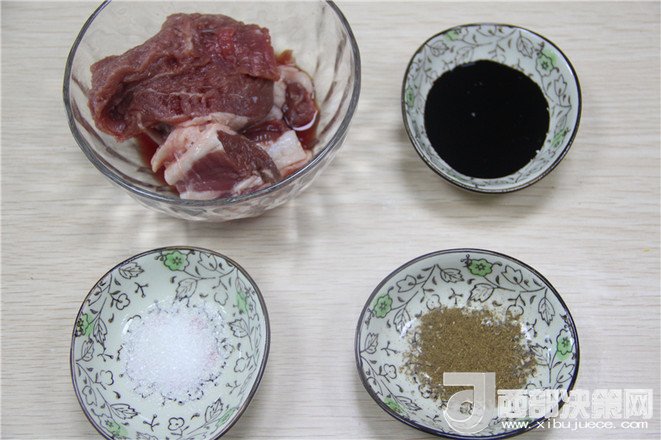 主料:牛肉 2塊   生抽 適量   鹽 適量   胡椒粉 適量