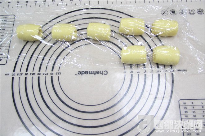 17.全部卷完后,用保鮮膜包起來,靜置5分鐘。