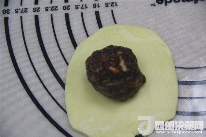 22.把牛肉球放面團(tuán)中間,底部捏緊。