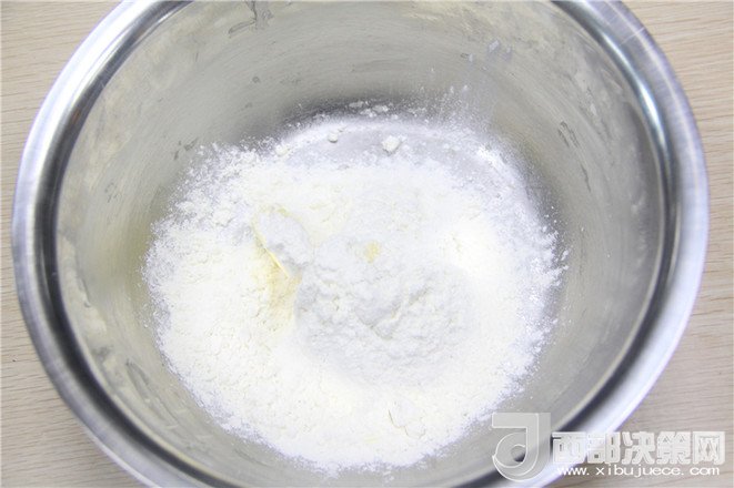 9.黃油和低粉混合攪拌均勻。