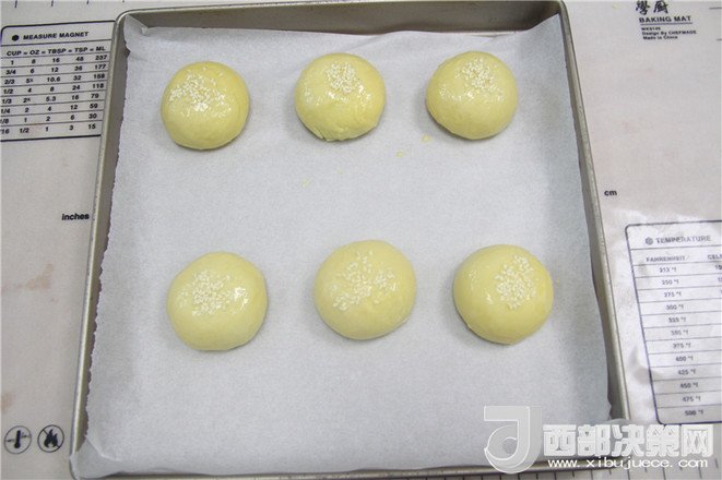 24.全部做完后,在表面刷一層蛋黃液,表面撒上芝麻。