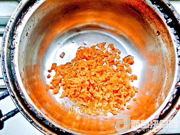 胡蘿卜切小丁,用油炒一下好讓胡蘿卜素出來(lái)