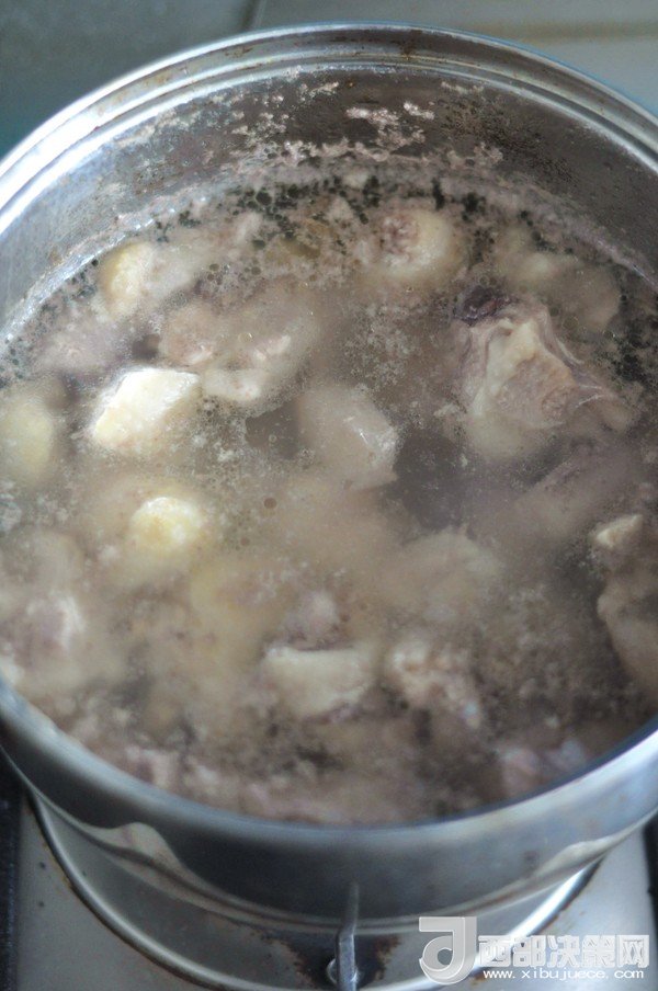 2.五花肉切塊后,冷水下鍋,煮至水開,撈出沖洗干凈。
