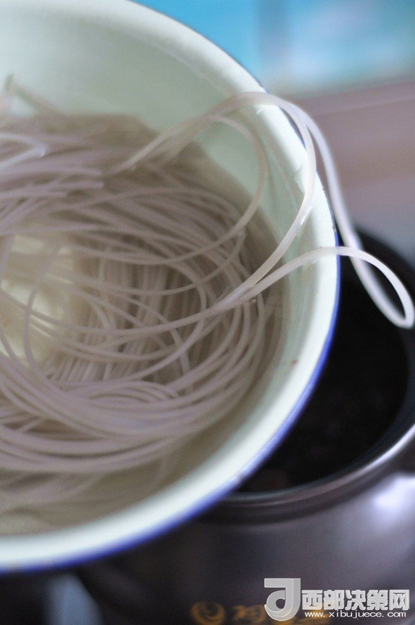 2.湯一定要加多些,因?yàn)榉劢z特別容易吸水,否則做完以后一鍋成稠的了。