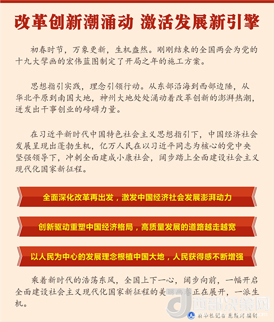 “我們要以更大的力度、更實(shí)的措施全面深化改革、擴(kuò)大對(duì)外開(kāi)放,貫徹新發(fā)展理念,推動(dòng)經(jīng)濟(jì)高質(zhì)量發(fā)展,建設(shè)現(xiàn)代化經(jīng)濟(jì)體系,不斷增強(qiáng)我國(guó)經(jīng)濟(jì)實(shí)力、科技實(shí)力、綜合國(guó)力,讓社會(huì)主義市場(chǎng)經(jīng)濟(jì)的活力更加充分地展示出來(lái)。”習(xí)近平總書(shū)記在十三屆全國(guó)人大一次會(huì)議上的重要講話(huà),再次發(fā)出了全面深化改革的號(hào)召。