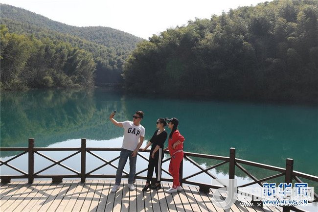 3月28日,游人在石塘竹海拍照留念。記者季春鵬攝