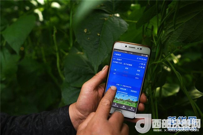 4月18日,甘肅省酒泉市肅州區(qū)總寨鎮(zhèn)總寨村村民范立德使用手機查看日光溫室的實時數(shù)據(jù)。