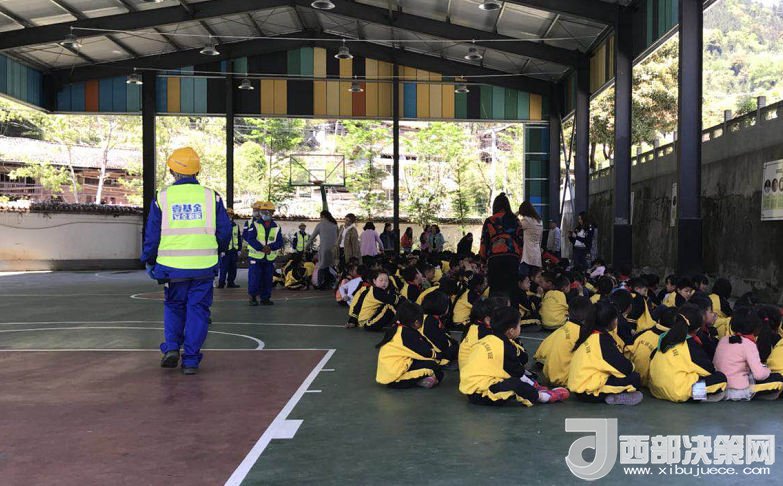 隨著一聲警報(bào)長(zhǎng)鳴,雅安市蘆山縣雙石鎮(zhèn)中心小學(xué)的200余名學(xué)生在老師的帶領(lǐng)下,迅速、有序的從教學(xué)樓跑到操場(chǎng),雙手抱頭蹲在操場(chǎng)的臨時(shí)安置區(qū)。校長(zhǎng)楊成虎統(tǒng)計(jì)完人數(shù)后,立刻安排所有師生趕往校園深處的地震避難場(chǎng)。