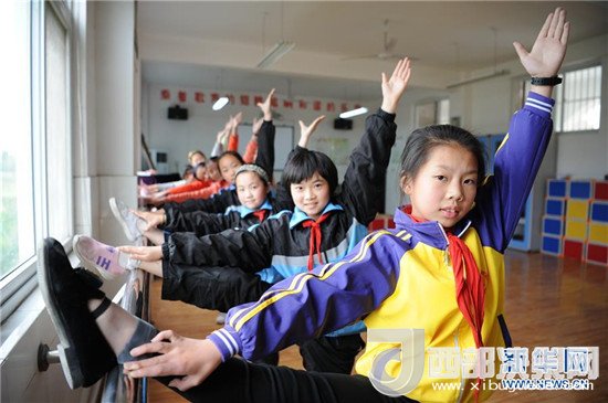 4月25日,陜西省勉縣溫泉鎮(zhèn)中心小學學生在音樂教室內(nèi)進行舞蹈練習。